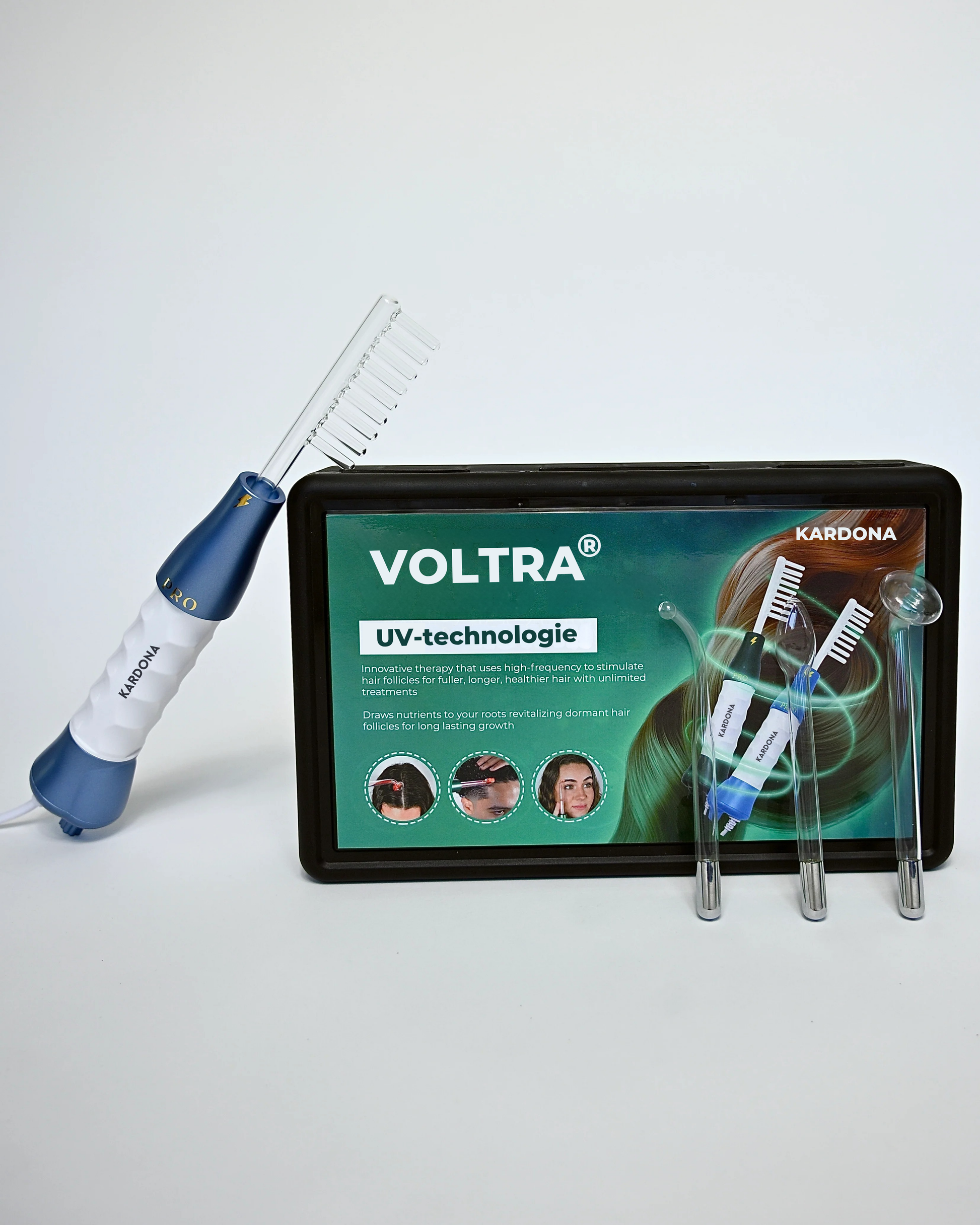 De Voltra gebruikt zachte hoogfrequente energie om de hoofdhuid te stimuleren, de bloedcirculatie te verbeteren en haarfollikels te activeren, wat zorgt voor gezonder en voller haar.